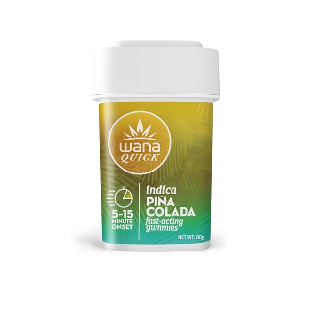 Fast, effective, and innovative, Wana Quick Gummies harness TiME™ (Thermodynamic individual Molecular Encapsulation), a new quick onset technology from Azuca. Azuca TiME™ creates individually encapsulated cannabinoids that work at the molecular level to enter the bloodstream immediately, providing a 5-15 minute onset and Delta-9-THC effects lasting up to 2-3 hours for most people. This fast-acting technology is paired with the rich and creamy pineapple and coconut flavors of a pina colada. Contains 20 5mg gummies.